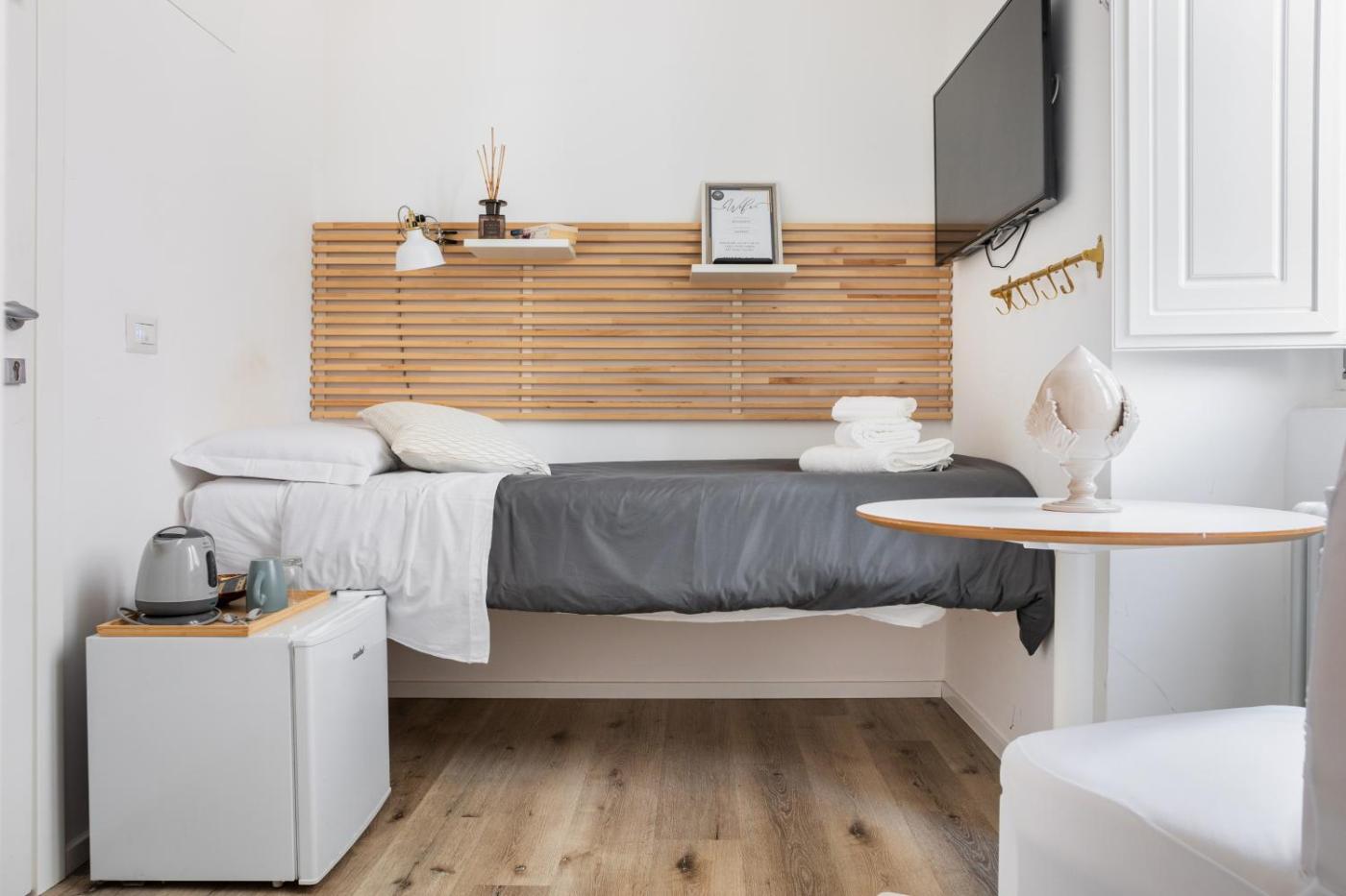 Camera Singola Ampia. Providing free toiletries, this single room includes a private bathroom with a shower and a hairdryer. The air-conditioned single room provides a flat-screen TV with streaming services, a private entrance, soundproof walls, a minibar as well as city views. The unit offers 1 bed. ;