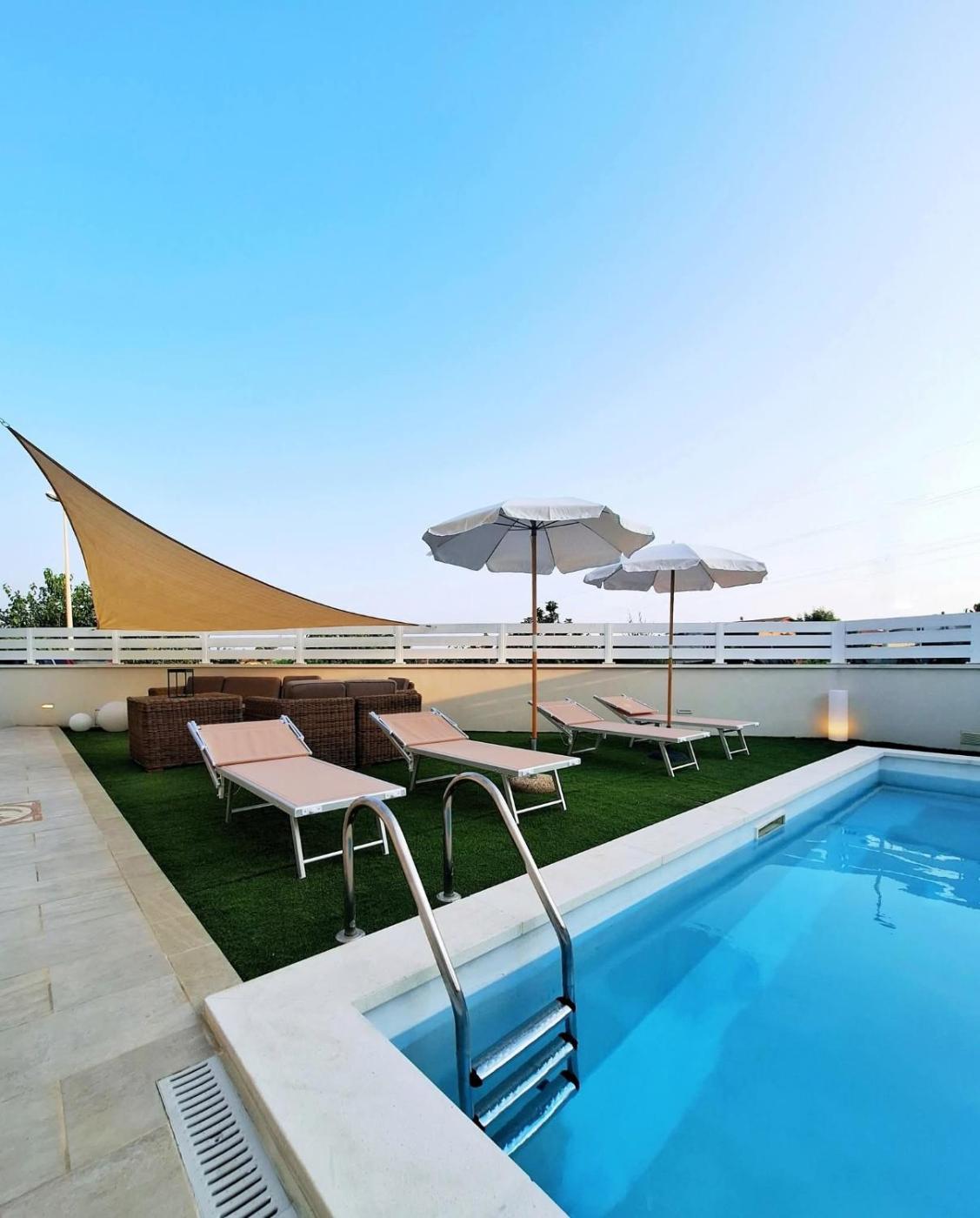 Camera Familiare. Questa camera familiare climatizzata offre una TV via cavo a schermo piatto, un bagno privato e un balcone con vista piscina. L’alloggio dispone di 2 letti. ;