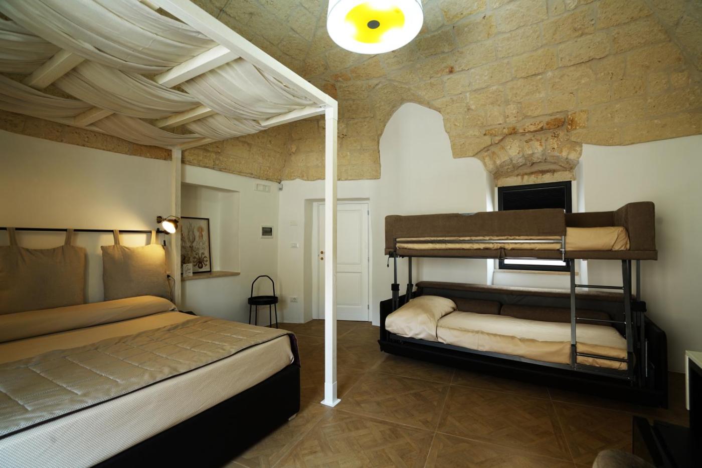"Dimora Sant’Anna è un Albergo Diffuso: le camere sono ospitate sia nel corpo centrale che tra i vicoli del centro storico di Carovigno, a pochi metri di distanza."