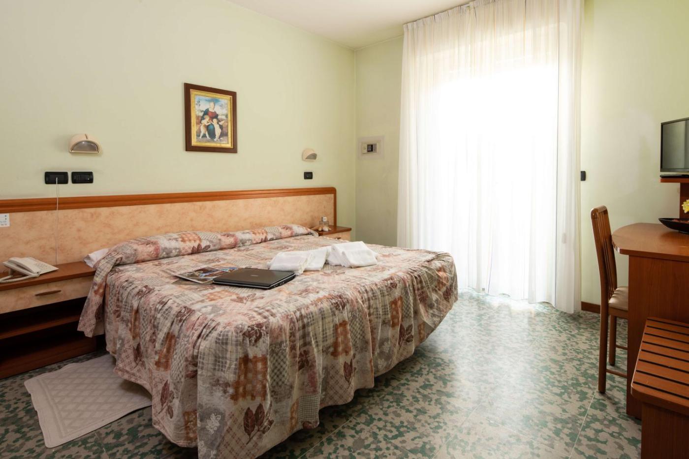 Camera Quadrupla. Featuring free toiletries, this quadruple room includes a private bathroom with a shower, a bidet and a hairdryer. The air-conditioned quadruple room features a flat-screen TV with satellite channels, soundproof walls, a wardrobe, a safe deposit box as well as ancourtyard view. The unit has 3 beds. ;