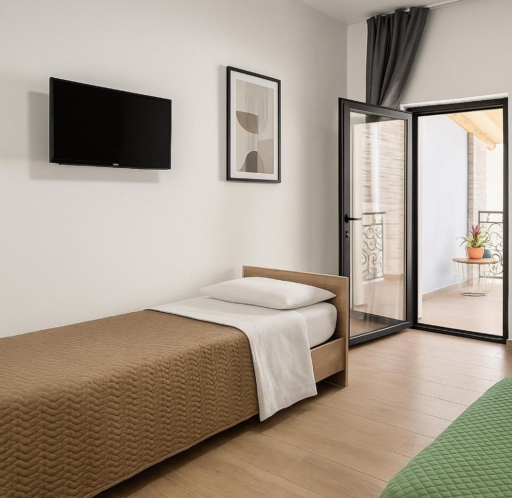 Camera Tripla con Terrazza. Featuring free toiletries and bathrobes, this triple room includes a private bathroom with a shower, a bidet and a hairdryer. Boasting a terrace with mountain views, this triple room also features soundproof walls and a flat-screen TV with streaming services. The unit has 2 beds.