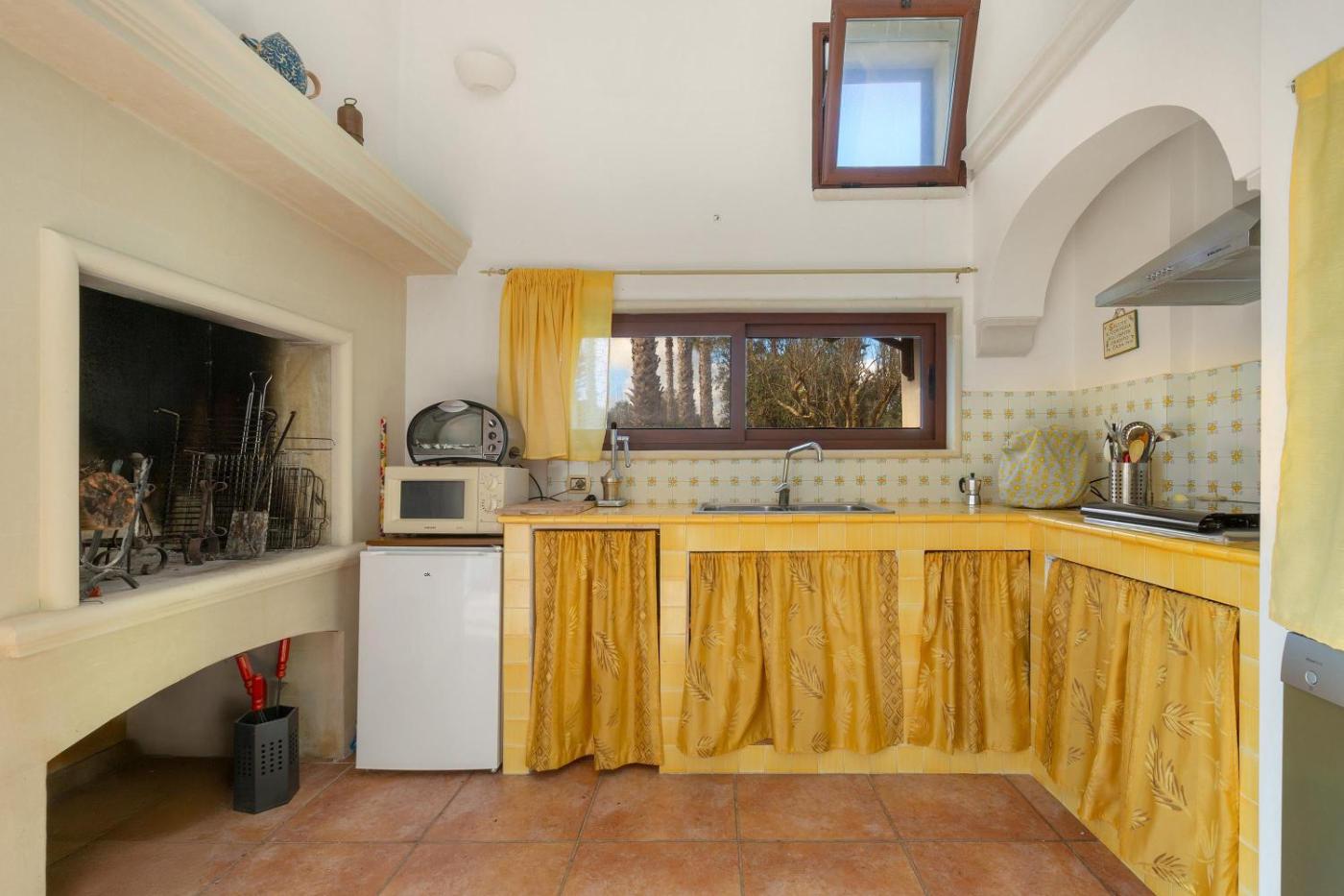 Questa casa di campagna con aria condizionata comprende 2 camere da letto, un soggiorno, una cucina con utensili piĂą frigorifero, e 2 bagni con bidet e asciugacapelli. Presso questa casa di campagna troverete asciugamani e lenzuola tra i servizi disponibili.