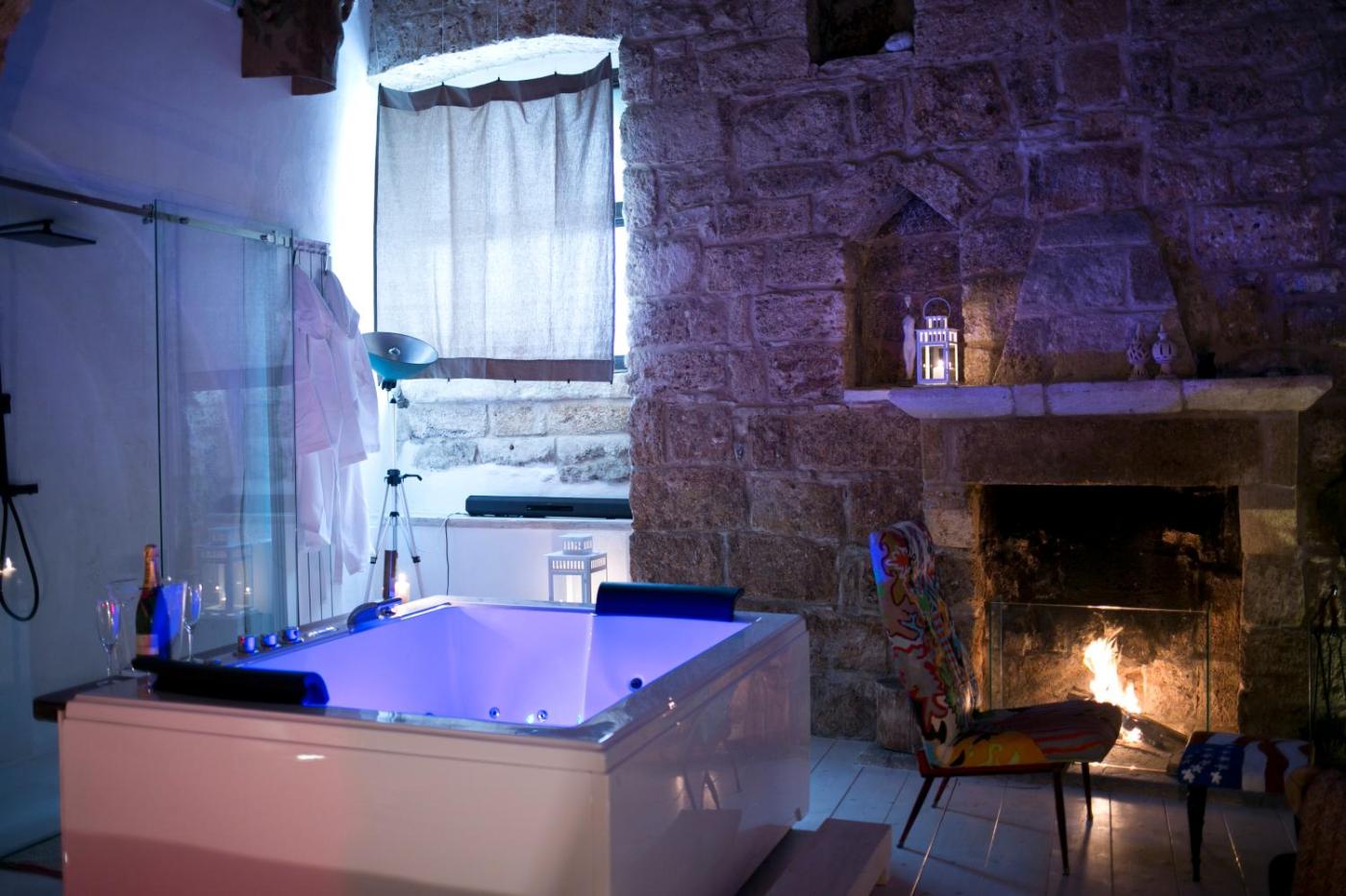 Casa Vacanze. Guests will have a special experience as this holiday home provides a hot tub, a spa bath and a fireplace. This holiday home comprises 1 living room, 1 separate bedroom and 1 bathroom with a walk-in shower and free toiletries. The well-fitted kitchenette has a stovetop, a refrigerator, kitchenware and a microwave. This holiday home features soundproof walls, flat-screen TV with satellite channels, a quiet street view, as well as winechampagne for guests.