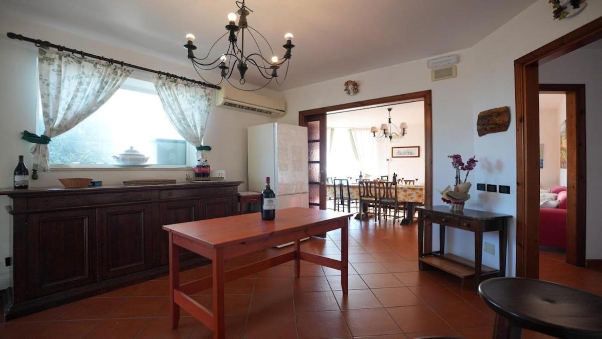 Questa villa presenta 6 camere da letto, 4 bagni, lenzuola, asciugamani, una TV a schermo piatto, una zona pranzo, una cucina con utensili e una terrazza con vista sul mare.