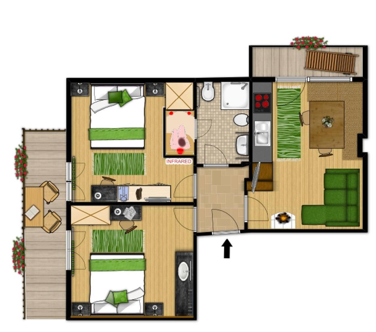 Appartamento Superior con Sauna. The sauna and fireplace are the special features of this apartment. This apartment comes with 1 living room, 1 separate bedroom and 1 bathroom with a shower and a bidet. Guests can make meals in the kitchen that features a stovetop, a refrigerator, a dishwasher and kitchenware. Boasting a balcony with garden views, this apartment also features a tea and coffee maker and a flat-screen TV. The unit has 3 beds. ;