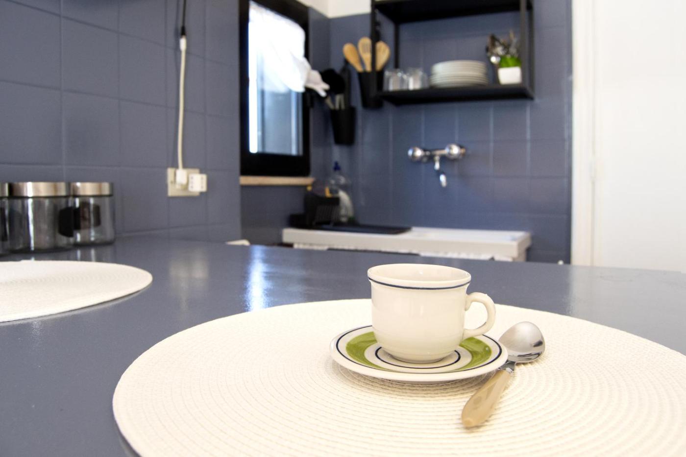 Questo appartamento con aria condizionata comprende 1 camera da letto, un soggiorno, una cucina con utensili piĂą frigorifero, e 1 bagno con bidet edi cortesia. A disposizione troverete una TV a schermo piatto.