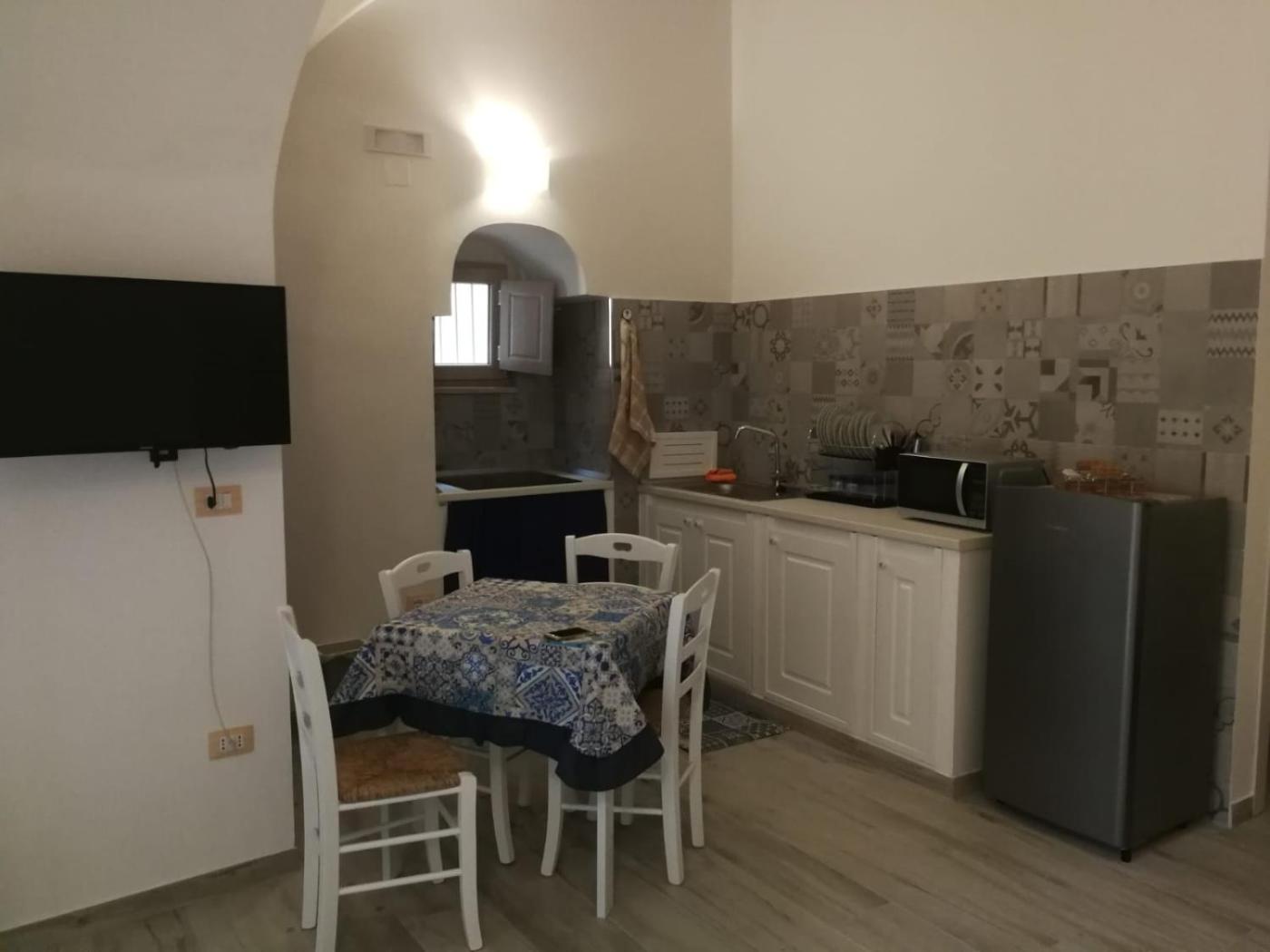 Questa casa vacanze con aria condizionata comprende 1 camera da letto e 1 bagno con bidet, doccia edi cortesia. La cucina prevede frigorifero, microonde e piano cottura più macchina da caffè.