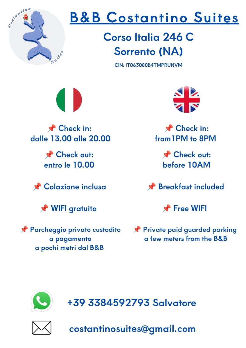 Check-in dalle 13:00 e termina alle 10:00.