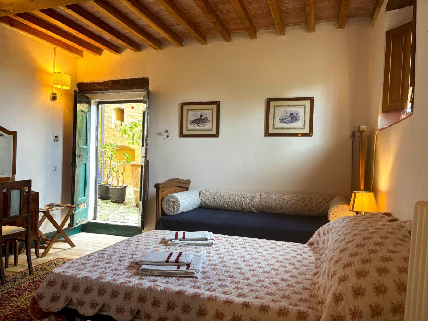 Camera Tripla con Bagno Privato. Offering free toiletries and bathrobes, this triple room includes a private bathroom with a shower, a bidet and a hairdryer. The triple room features a private entrance, a tea and coffee maker, a wardrobe as well as a terrace with garden views. The unit offers 2 beds.