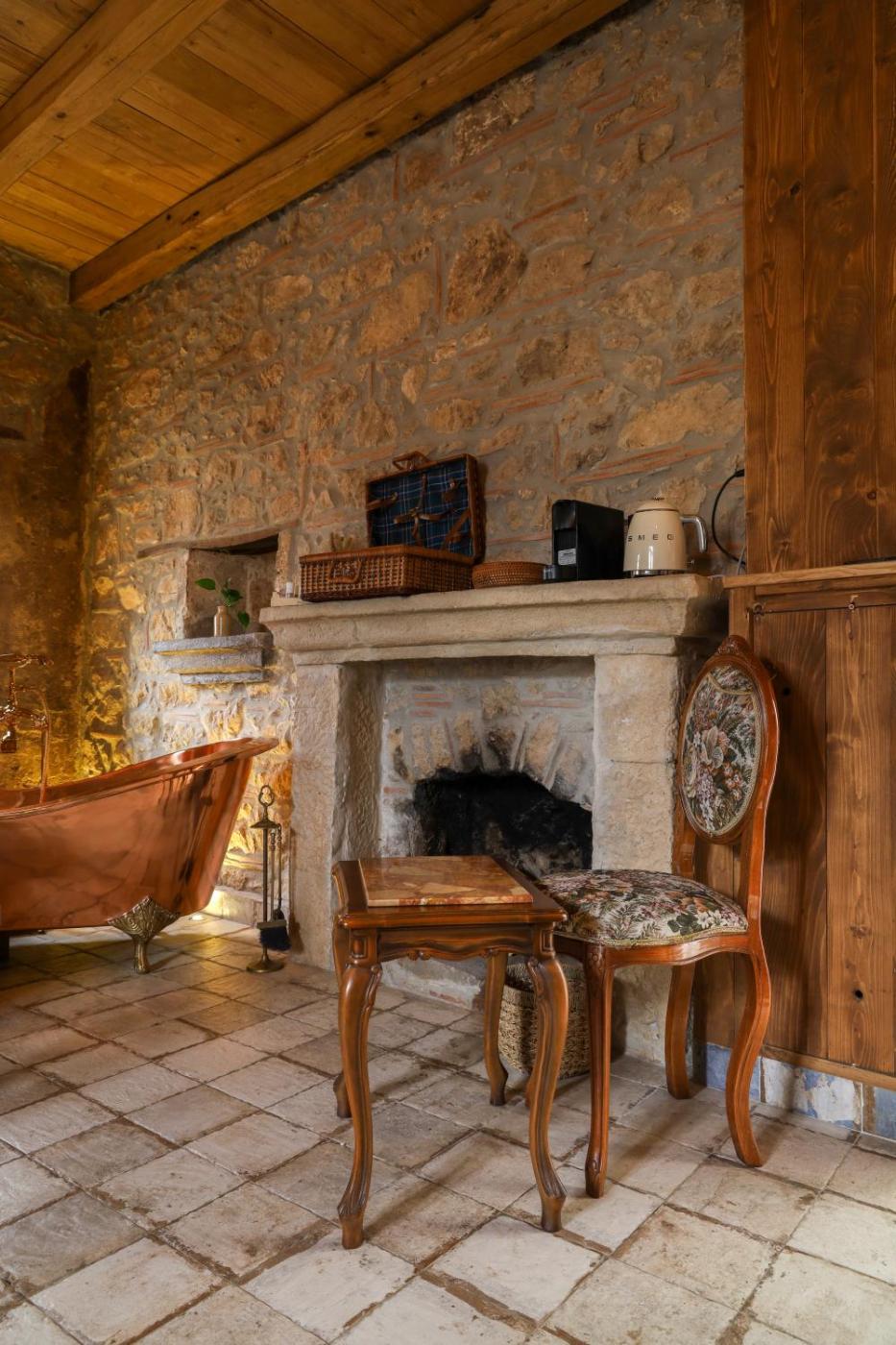 Camera Matrimoniale Deluxe con Vasca. This double room features a fireplace. Offering free toiletries and bathrobes, this double room includes a private bathroom with a bath, a shower and a bidet. The air-conditioned double room offers a flat-screen TV with streaming services, a private entrance, soundproof walls and a tea and coffee maker. The unit has 1 bed.